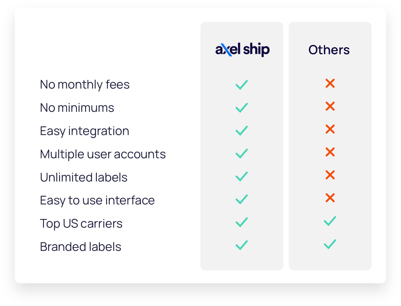 Axel Ship ensures a seamless and effortless onboarding experience, enabling brands to scale their businesses while simultaneously reducing shipping costs through our turnkey integrations with major eCommerce platforms like Shopify, Magento, BigCommerce, ShipStation, and more.